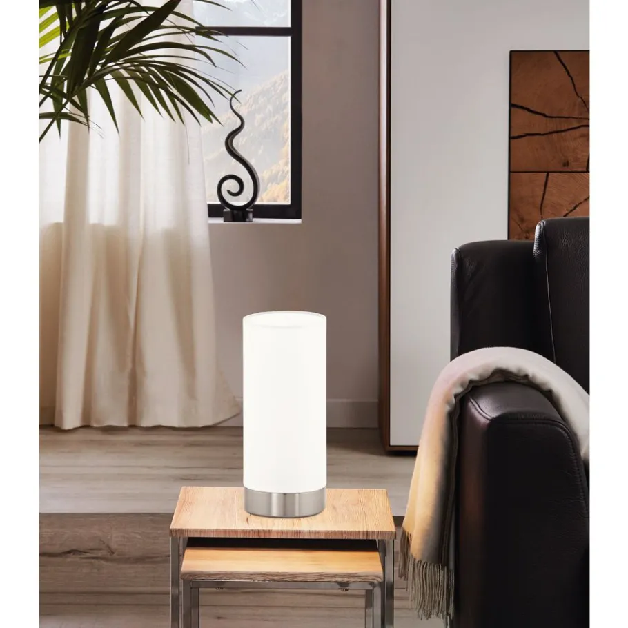 Eglo PASTERI Tafellampen staal nikkel-mat / textiel wit H: 255 mm | Ø 120 mm Hot