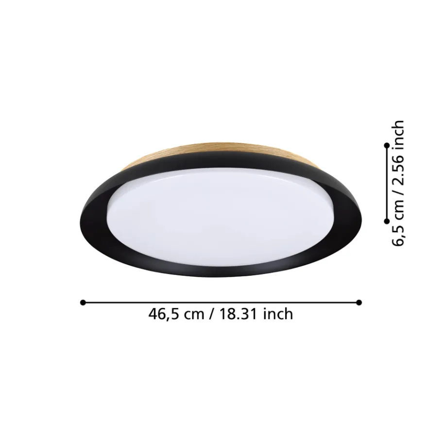 Eglo PENJAMO 1 Plafondarmaturen staal, hout zwart, bruin / Kunststof wit H: 65 mm | Ø 465 mm Hot