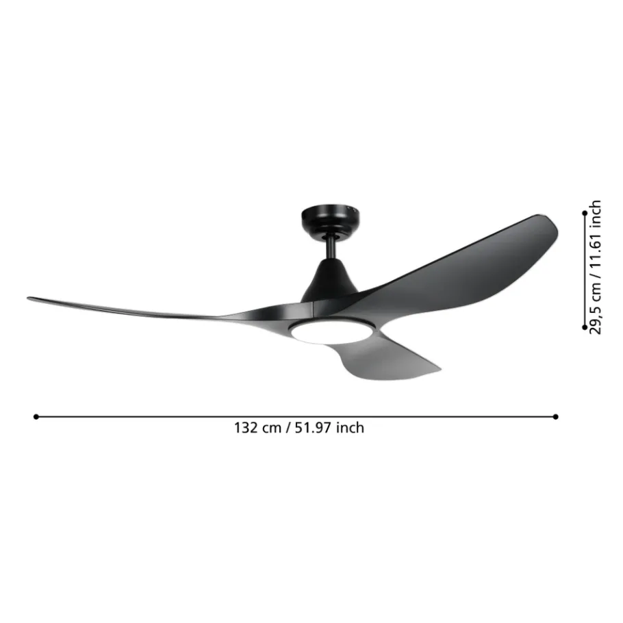 Eglo PORTSEA Ventilator met licht ABS zwart-mat / acryl melkkleurig H: 295 mm | Ø 1320 mm Discount