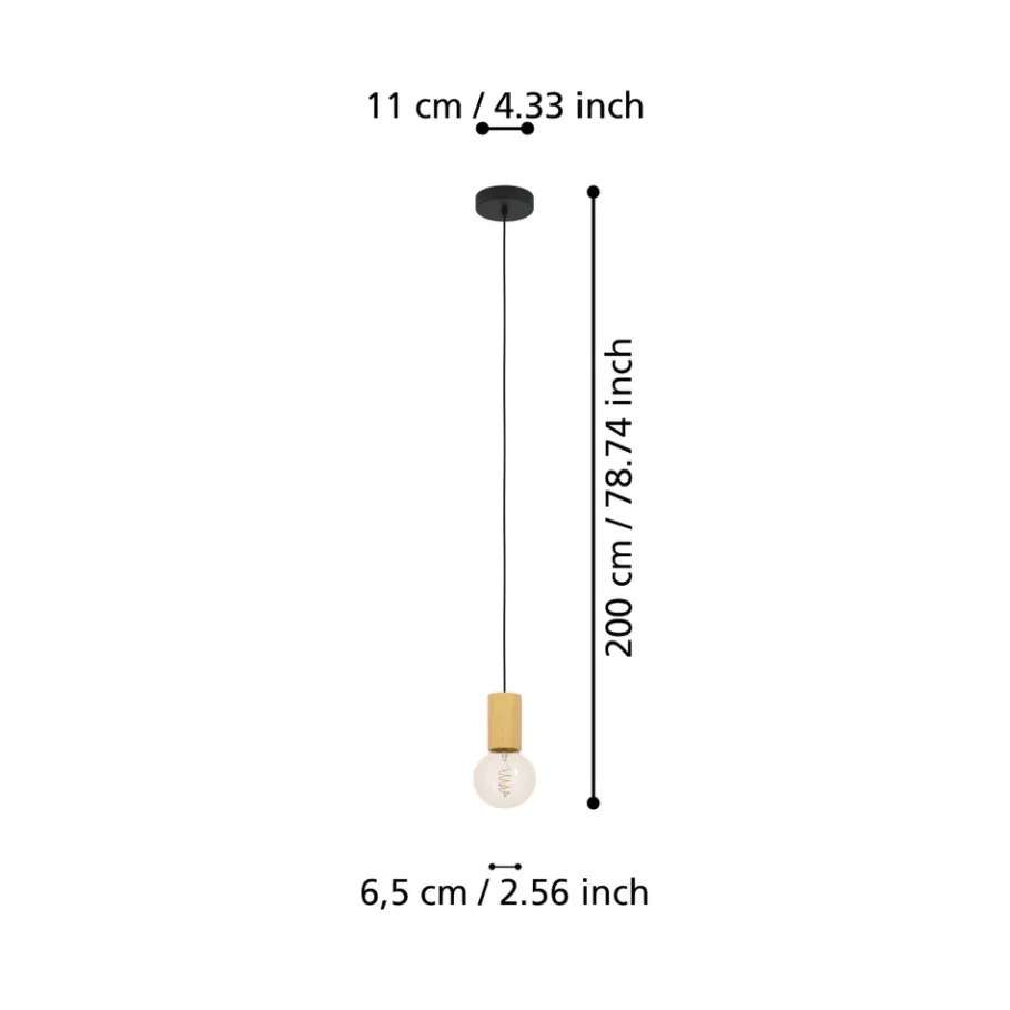 Eglo POZUETA 1 hanglamp staal, hout zwart, bruin H: 1100 mm | Ø 65 mm