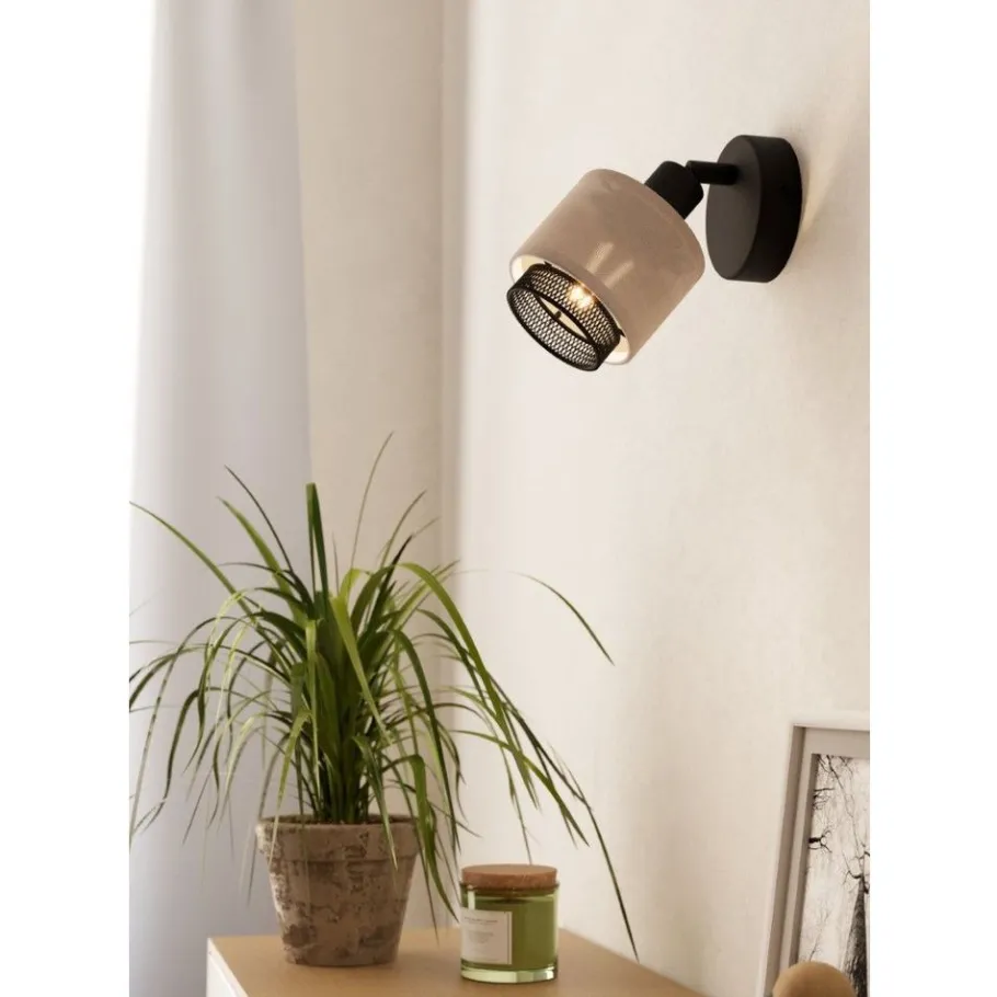 Eglo ROSLEY spot staal zwart / textiel, linnen natuur H: 110 mm | Ø 90 mm Hot