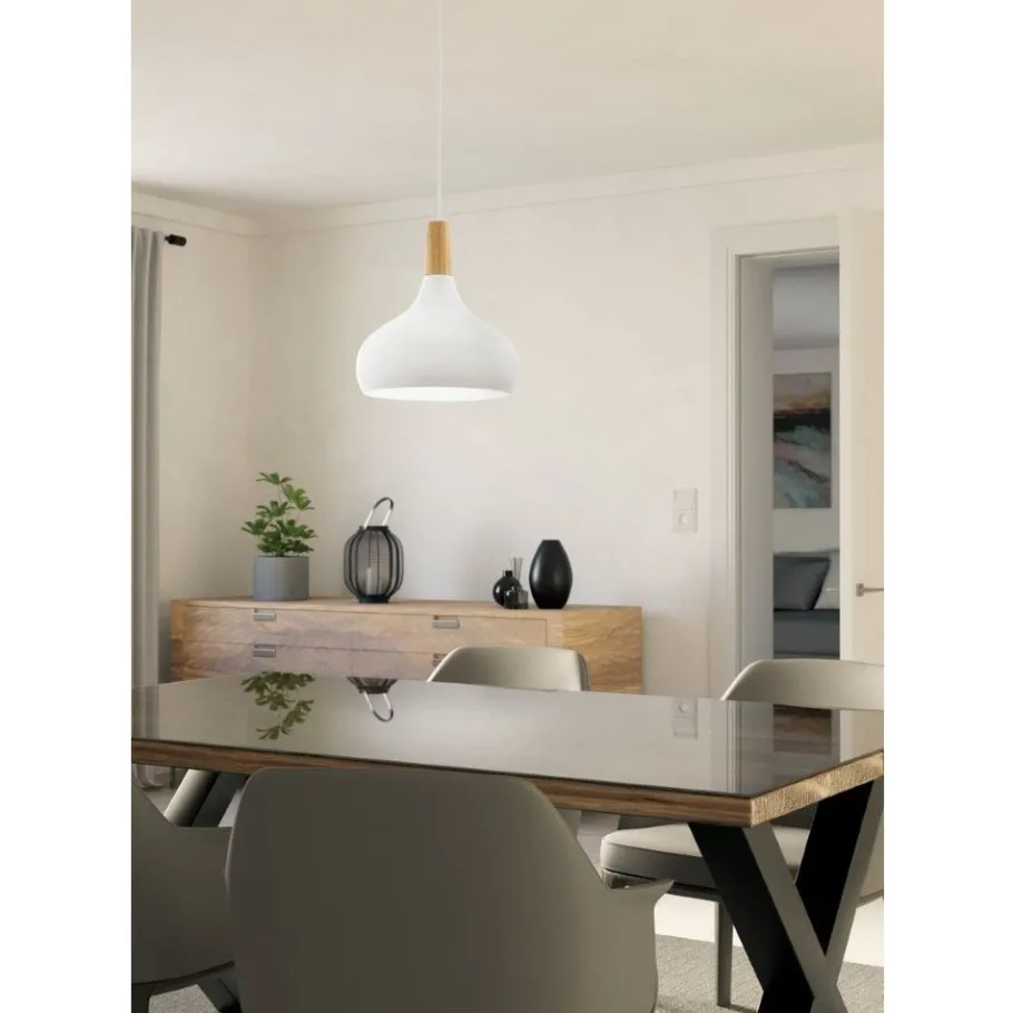 Eglo SABINAR hanglamp staal wit / Hout bruin H: 1100 mm | Ø 280 mm Hot