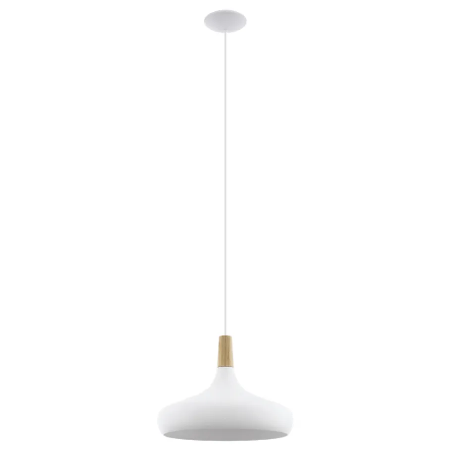 Eglo SABINAR hanglamp staal wit / Hout bruin H: 1100 mm | Ø 400 mm Best