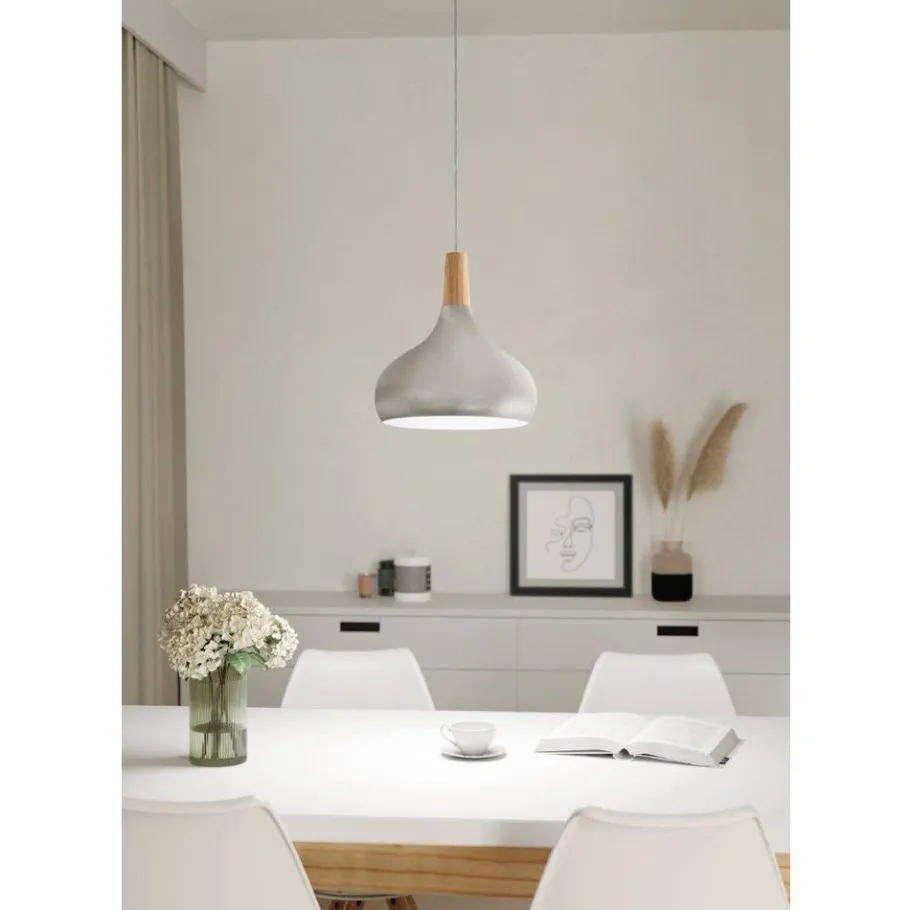Eglo SABINAR hanglamp staal zilver geborsteld / Hout bruin H: 1100 mm | Ø 280 mm Best