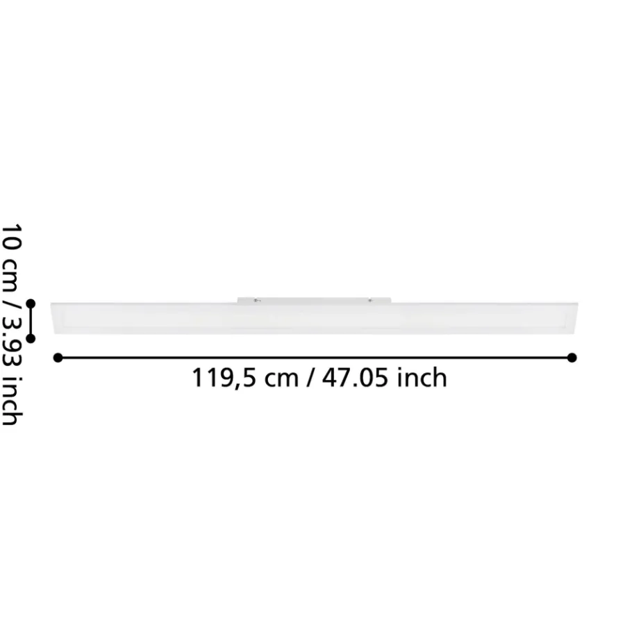 De SALOBRENA 1 LED plafondlamp bestaat uit een rechthoekig wit metalen frame met een witte kunststof afdekking. Dankzij het visuele zwevende effect dat ontstaat door de verborgen plafondsteun, maakt dit 120 cm lange en 10 cm dikke LED-paneel een bijzonder hoogwaardige indruk. Het tijdloze ontwerp en het neutrale witte werklicht van deze plafondlamp zijn perfect voor alle ruimtes waar goede verlichting nodig is, bijvoorbeeld in de keuken, hal, wasruimte of kantoor.