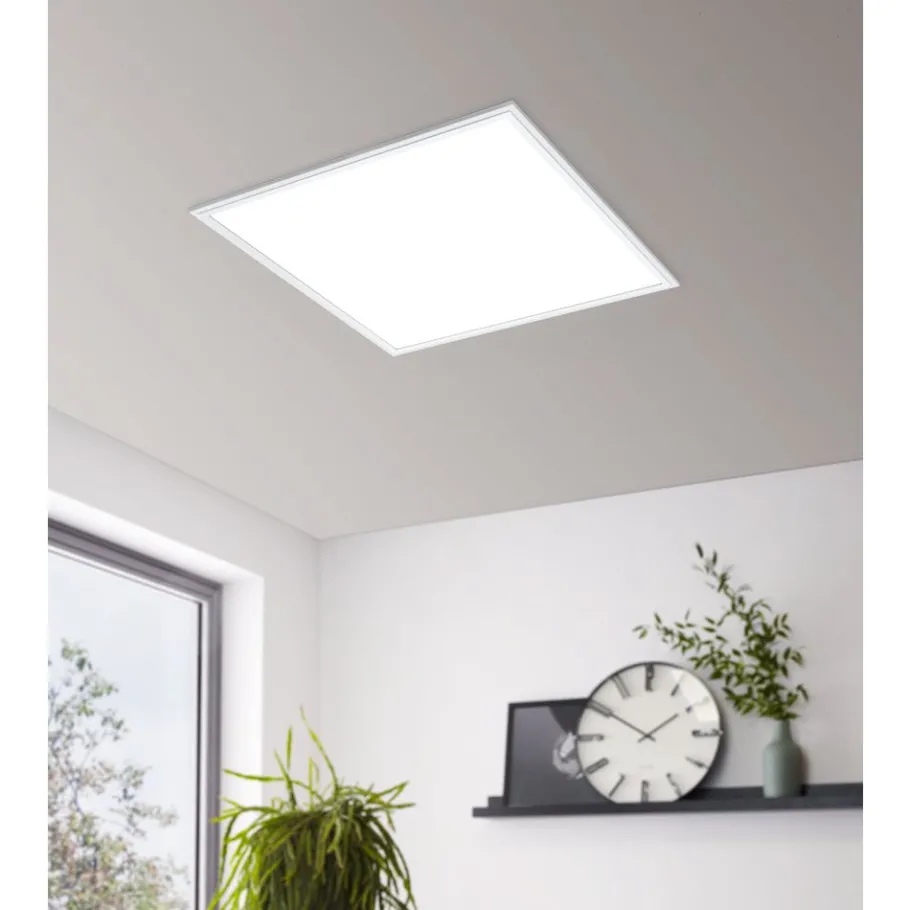 De SALOBRENA-A LED plafondlamp uit de Access afstandsbediening serie bestaat uit een vierkant wit aluminium frame gecombineerd met een wit kunststof lichtvlak. Dankzij het slanke frame en het visuele zwevende effect van de verborgen plafondbeugel maakt dit LED-paneel een bijzonder hoogwaardige indruk. De geïntegreerde LEDs geven een aangenaam licht volgens je voorkeuren. Je kunt kiezen tussen warm wit, neutraal wit en koel wit licht. Het armatuur wordt bediend met de meegeleverde afstandsbediening, waarmee je toegang heeft tot extra comfortfuncties zoals dimmen, nachtlicht, timer (licht schakelt uit na 30 minuten) en twee vooraf ingestelde verlichtingsmodi. Je kunt ook tot 8 Access-armaturen tegelijk bedienen met één enkele afstandsbediening en bepaalde verlichtingsinstellingen opslaan. Met haar formaat van 60 x 60 cm past deze plafondlamp perfect in moderne, minimalistische interieurs en biedt ze stijlvolle verlichting in elke ruimte, of het nu de keuken, woonkamer, slaapkamer, hal of kantoor is.