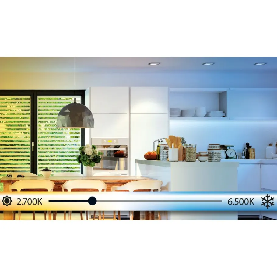 De LED-plafondlamp SARSINA-A uit de Access-serie met afstandsbediening bestaat uit een rond wit aluminium frame gecombineerd met een wit kunststof lichtoppervlak. Dankzij het slanke frame en het visuele zwevende effect van de verborgen plafondbeugel maakt dit LED-paneel een bijzonder hoogwaardige indruk. De geïntegreerde LEDs geven een aangenaam licht volgens je voorkeuren. Je kunt kiezen tussen warm wit, neutraal wit en koel wit licht. Het armatuur kan worden bediend met de meegeleverde afstandsbediening, die toegang geeft tot extra comfortfuncties zoals dimmen, nachtlicht, timer (licht schakelt uit na 30 minuten) en twee vooraf ingestelde verlichtingsmodi. Je kunt ook tot 8 Access-armaturen tegelijk bedienen met één enkele afstandsbediening en bepaalde verlichtingsinstellingen opslaan. Met een diameter van 60 cm past deze plafondlamp perfect in moderne, minimalistische interieurs en zorgt ze voor stijlvolle verlichting in elke ruimte, of het nu de keuken, woonkamer, slaapkamer, hal of kantoor is.