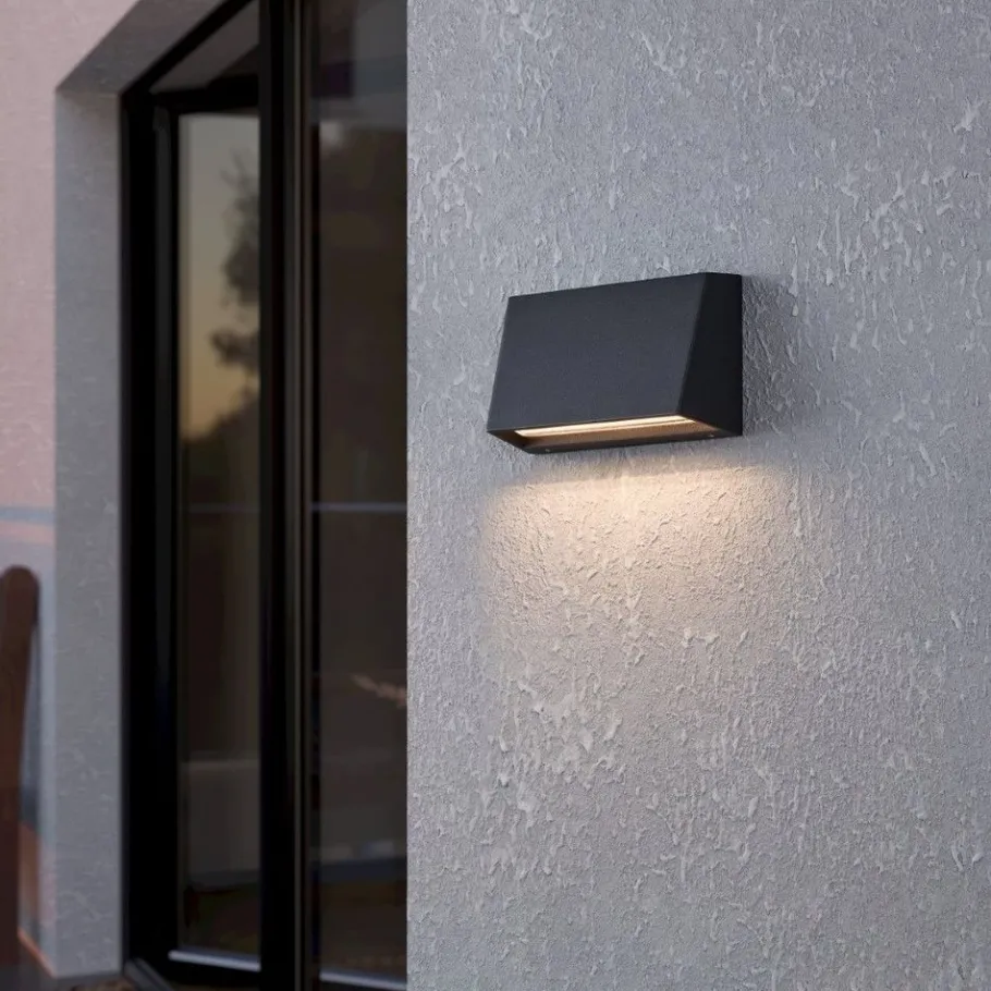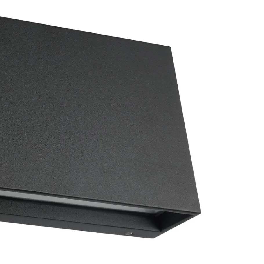 De SPONGANO LED buitenwandlamp bestaat uit een hoekige behuizing van antraciet aluminium en een kap van helder glas. Het minimalistische en lineaire ontwerp past in bijna elke buitenruimte en zorgt voor een stijlvolle verlichting op de buitenmuur. Via de schakelaar is er de mogelijkheid om de buitenlamp om te schakelen naar de lichtkleuren 3000K, 4000K, 5000K en 6500K. De wandlamp is zowel stof- als straalwaterdicht (IP65) en maakt een probleemloos gebruik in de buitenruimte mogelijk.