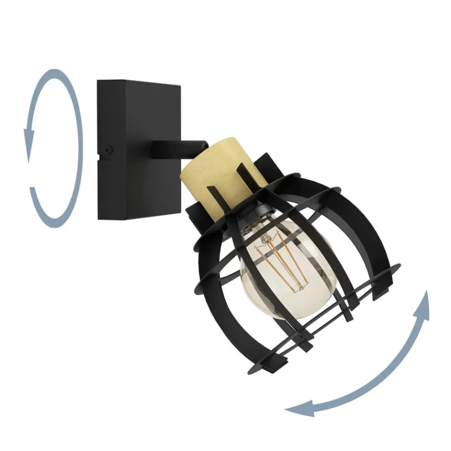 Eglo STILLINGTON 1 spot staal, hout zwart, bruin H: 245 mm | Ø 160 mm Discount