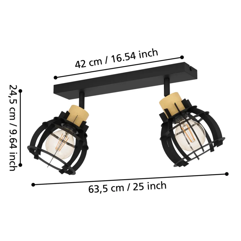 Eglo STILLINGTON 1 spot staal, hout zwart, bruin H: 245 mm