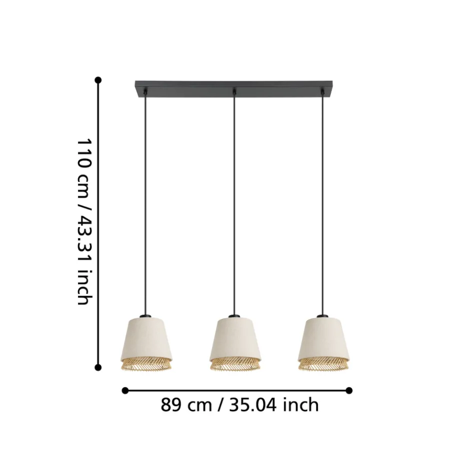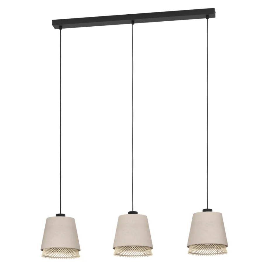 Eglo TABLEY hanglamp staal zwart / textiel, hout natuurlijk, bruin H: 1100 mm Best