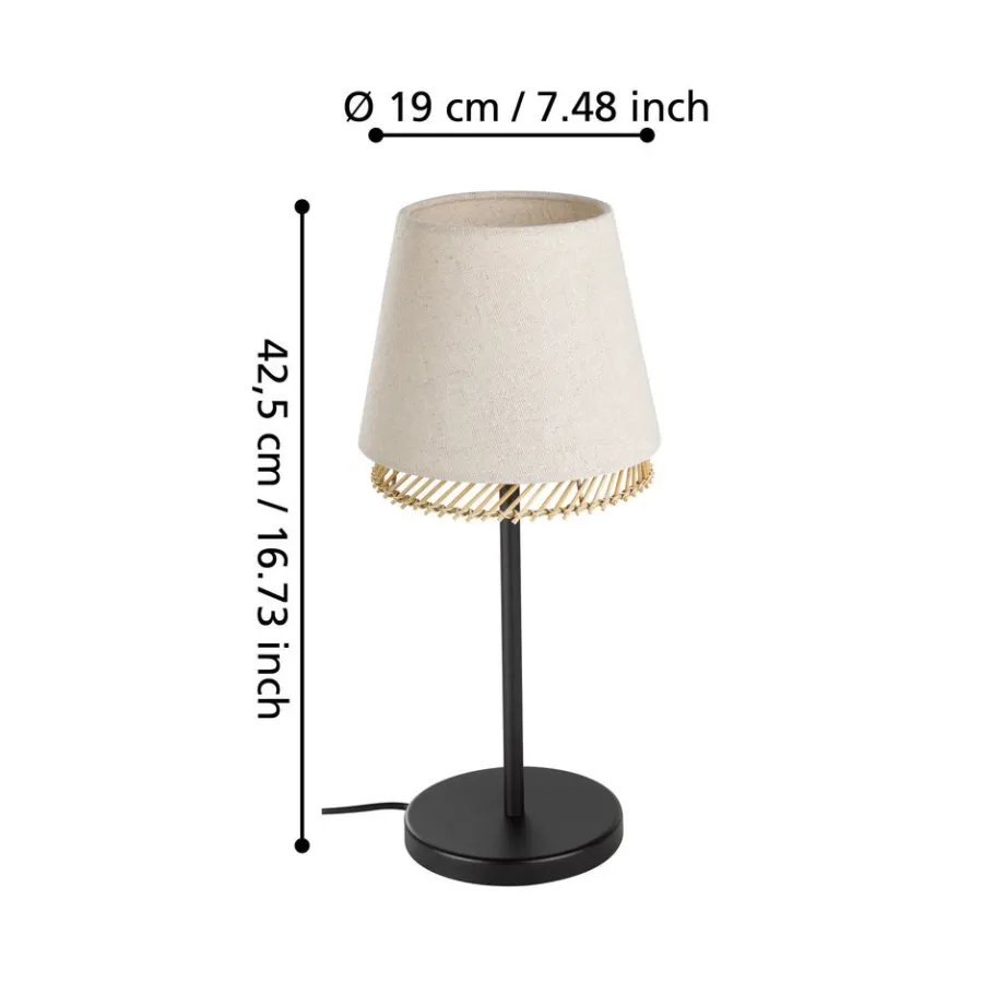 Eglo TABLEY Tafellampen staal zwart / textiel, hout natuurlijk, bruin H: 425 mm | Ø 190 mm Clearance