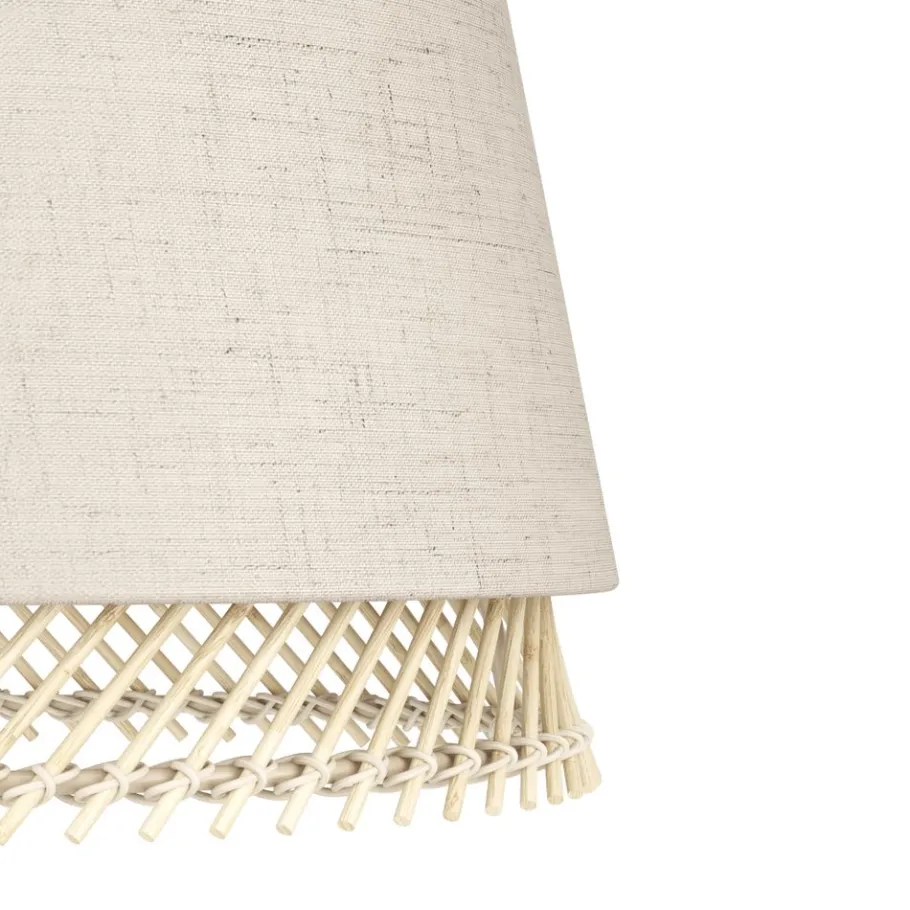 De tafellamp TABLEY is gemaakt met twee geneste ronde lampenkappen en een zwart metalen lampvoet. De harmonieuze combinatie van de buitenste linnen kap in natuurlijke kleuren en de binnenste kap van een bamboeraster geeft de lamp een huiselijke uitstraling. Bij het inschakelen wordt de natuurlijke structuur van de stof zichtbaar. Ook is hij eenvoudig aan en uit te zetten door middel van een schakelaar op de kabel. De tafellamp past in moderne inrichtingsstijlen zoals de natuurtrend en biedt huiselijke verlichting in de slaapkamer, woonkamer, eetkamer of hal. De lamp is niet bij de levering inbegrepen. De lamp is geschikt voor elke lamp met een E27 fitting.