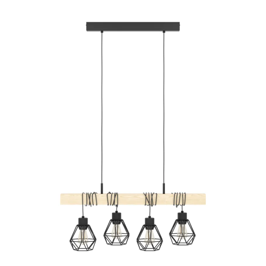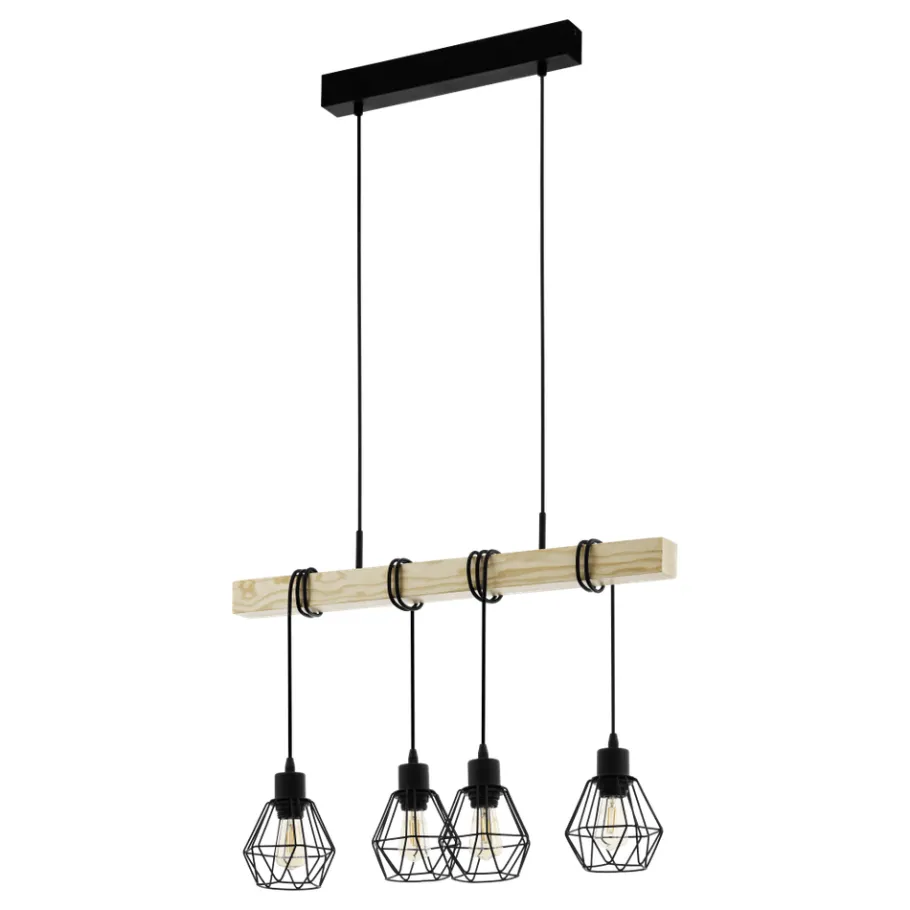 Eglo TOWNSHEND 5 hanglamp staal, hout zwart, bruin H: 1100 mm