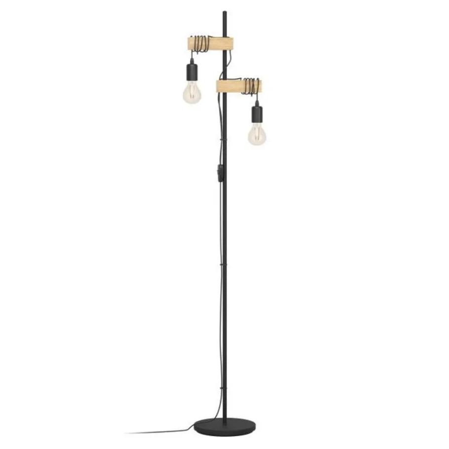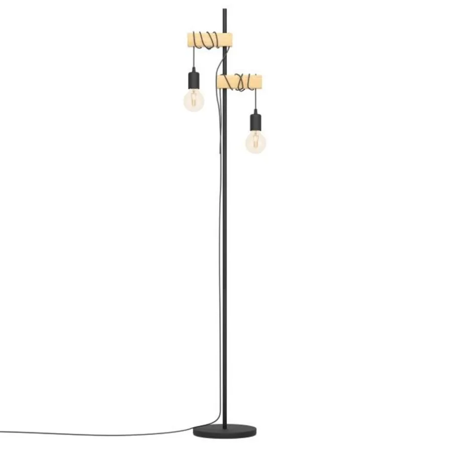Deze vloerlamp met 2 lichtbronnen uit de serie TOWNSHEND overtuigt door het buitengewone ontwerp en de materiaalmix van zwart staal en licht massief hout. Met elke E27-lichtbron laat hij je woonruimte stralen met een aangenaam trendy licht.