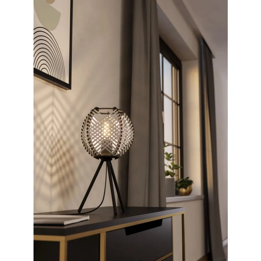 Eglo WAVERTON Tafellampen staal zwart / textiel, hout wit, zwart H: 400 mm | Ø 220 mm New