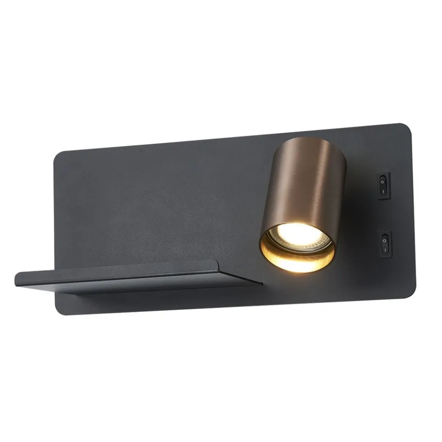 Fantasia DUSK wandl rechts + USB GU10 (excl) + LED 7W 2700K zwart + geb brons Outlet