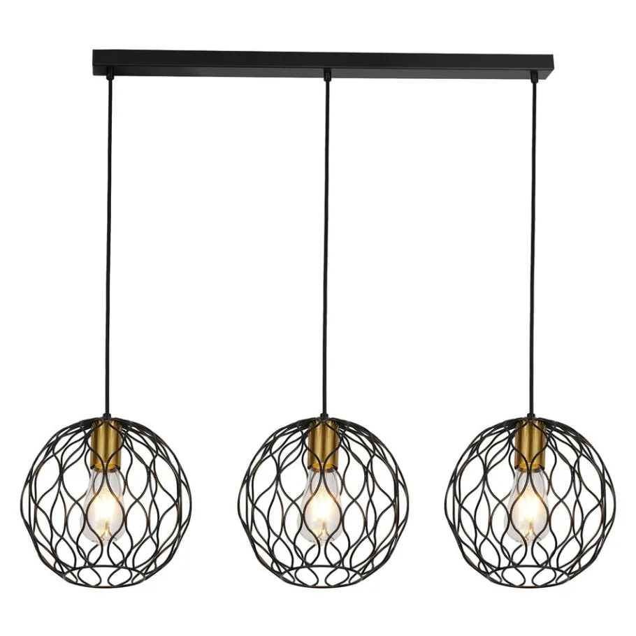 Fantasia ONDA pendel 3x E27 zwart + geborsteld goud Hot
