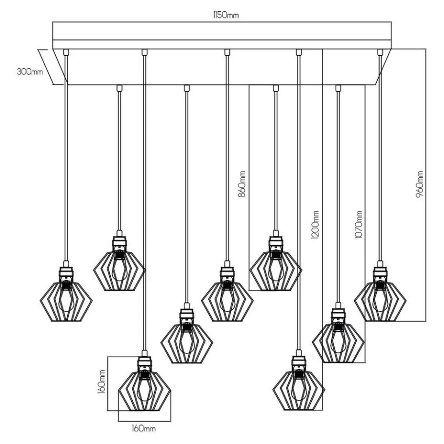 Fantasia SHURU 9x E27 pendel zwart+koper Best