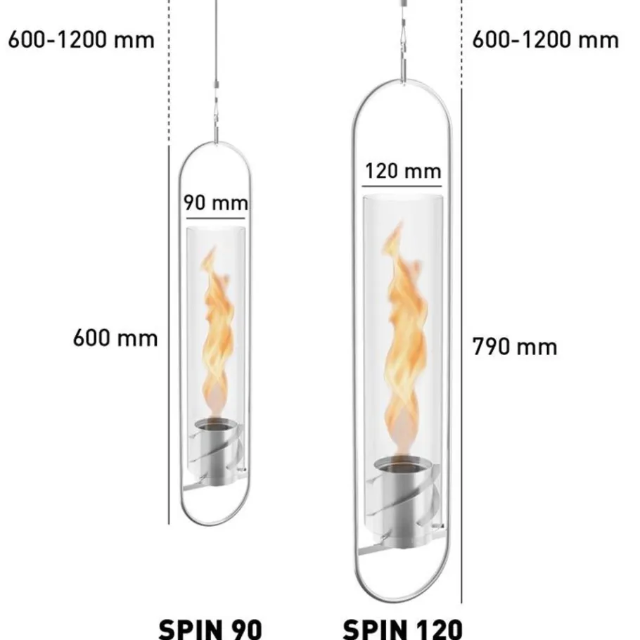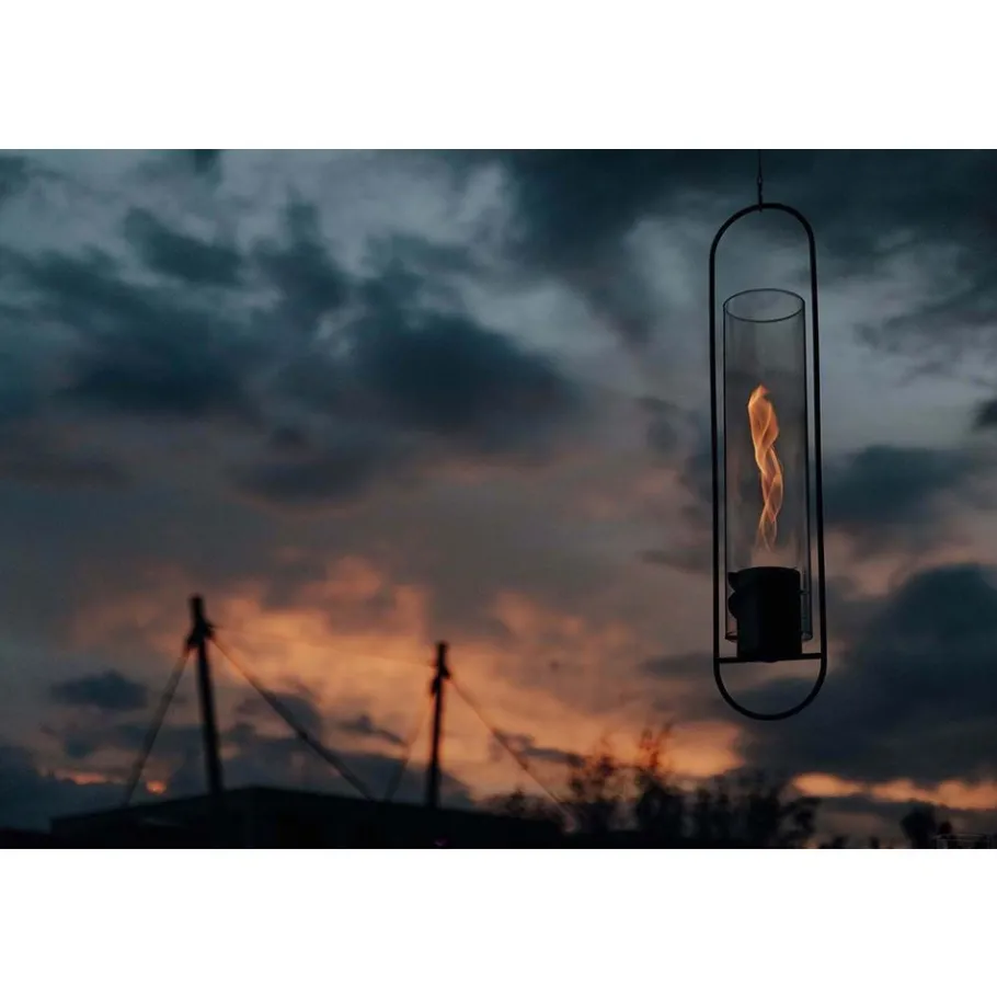 SPIN HANGING FIRE– een wilde werveling van vlammen in een decoratieve glazen cilinder die als bij toverslag in de ruimte lijkt te zweven. Een eyecatcher met een warme uitstraling. Om je goed te voelen en te genieten op je balkon, terras of woonkamer.