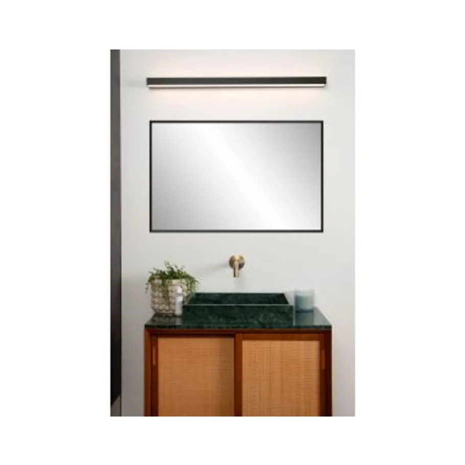 Minimalistische verlichting die toch grandioos is? Alexa combineert sublieme eenvoud met tijdloze elegantie. Deze rechthoekige wandlamp met geïntegreerde led past perfect in je badkamer of boven de wastafel aan het gastentoilet. Uitgevoerd in hoogwaardig metaal en met een opalen kap over de lichtbron werpt Alexa een warme gloed in de ruimte. De ideale compagnon om je dag goed te starten of ’s avonds sereen af te sluiten. De muurlamp is 90 centimeter lang, 8 centimeter breed en bijna 4 centimeter hoog.