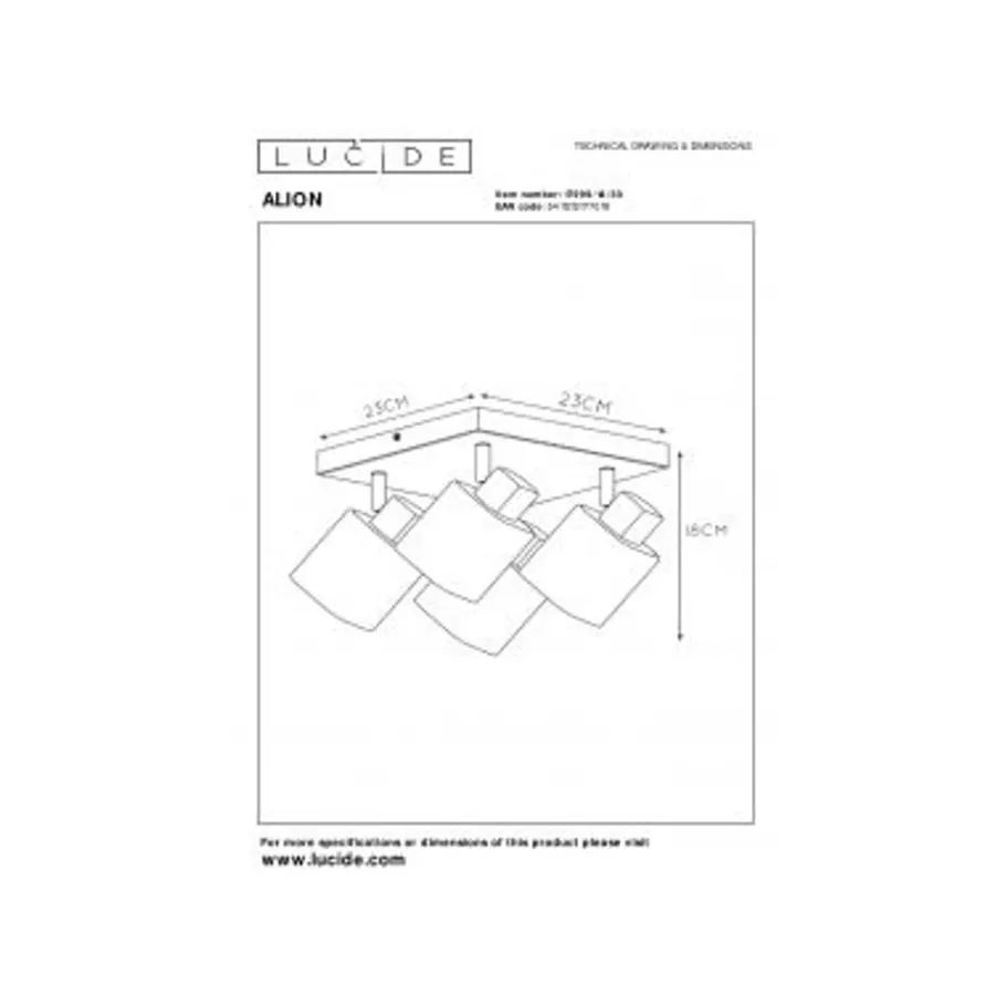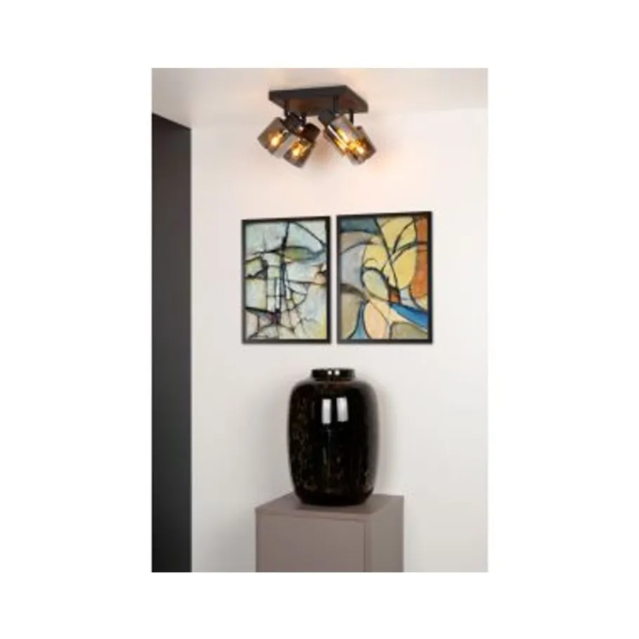 Zoek je plafondspots met net dat ietsje meer? Dan is Alion de ideale keuze. Deze plafondlamp met vier lichtpunten is 18 centimeter hoog, met een vierkante, metalen plafondplaat van 23 op 23 centimeter. De lampenkappen bestaan uit fuméglas in een afgerond vierkant dat zich rond de vier lichtbronnen bevindt. Zo krijgt de klassieke vormgeving van Alion meteen een moderne toets. De plafondlamp is draai- en kantelbaar en sluit je eenvoudig aan op een dimmer. Het perfecte licht waar en waneer je het nodig hebt? Alion is er klaar voor.