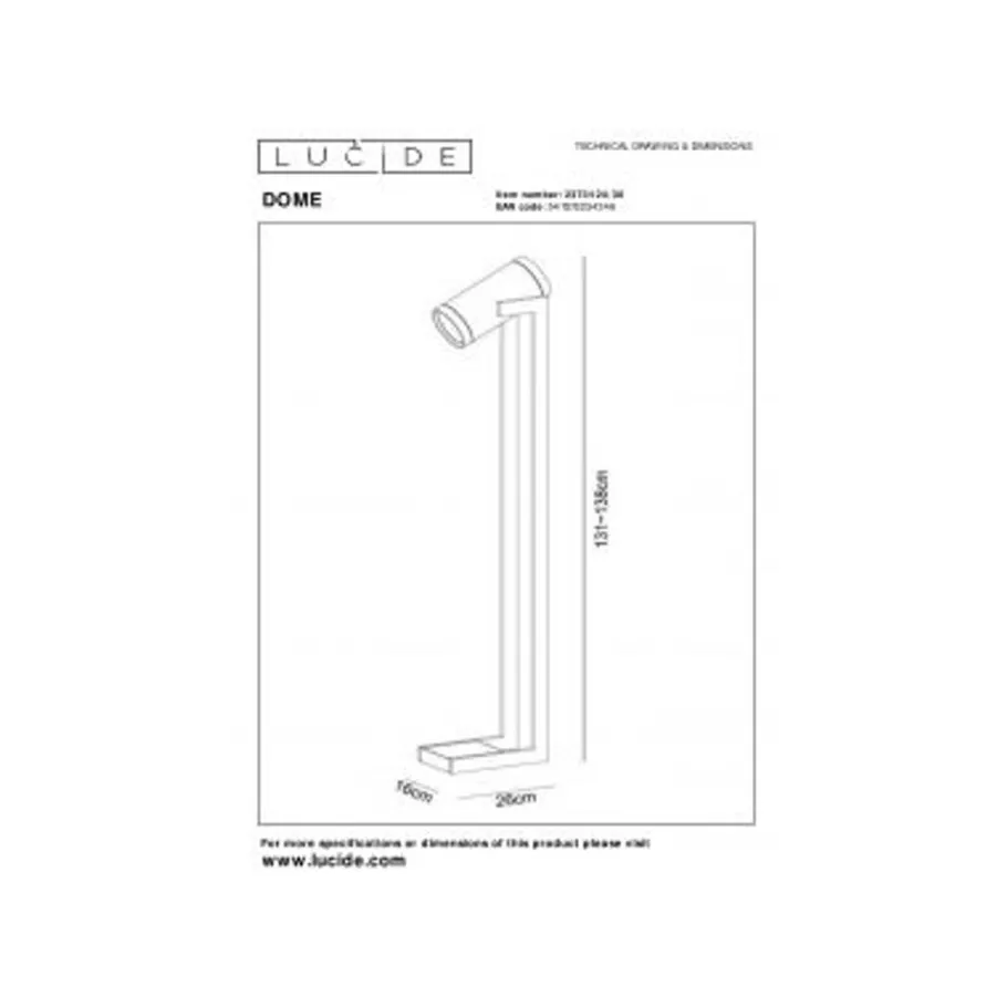 - Afmetingen: L.16 x B.26 x H.138 cm