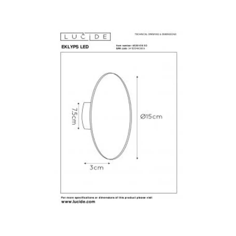 Lucide EKLYPS LED – Wandlamp – Ø 15 cm – LED – 1x7W 3000K – Mat Goud / Messing Outlet