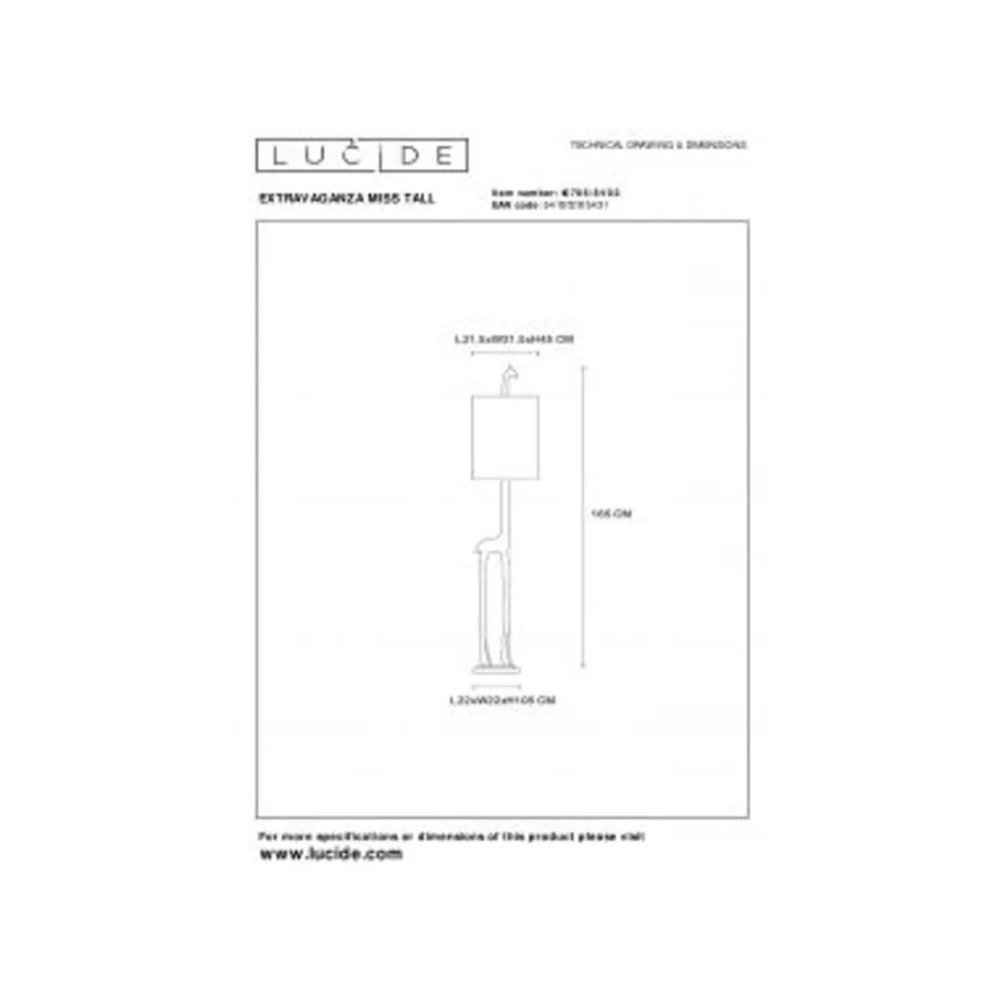 Miss Tall heeft haar naam niet gestolen. Niet alleen is deze vloerlamp 160 centimeter hoog, de naam is ook een verwijzing naar de vormgeving. Deze statige giraf is het nieuwste lid van de Extravaganza collectie. Ze is gemaakt uit hoogwaardig kunststof en een katoenen lampenkap rond de nek met in het midden de ledlichtbron. Zo is deze staande lamp een speelse en originele toevoeging aan je interieur, met net dat tintje retro. Aan- en uitschakelen gebeurt eenvoudig via de schakelaar in het snoer.