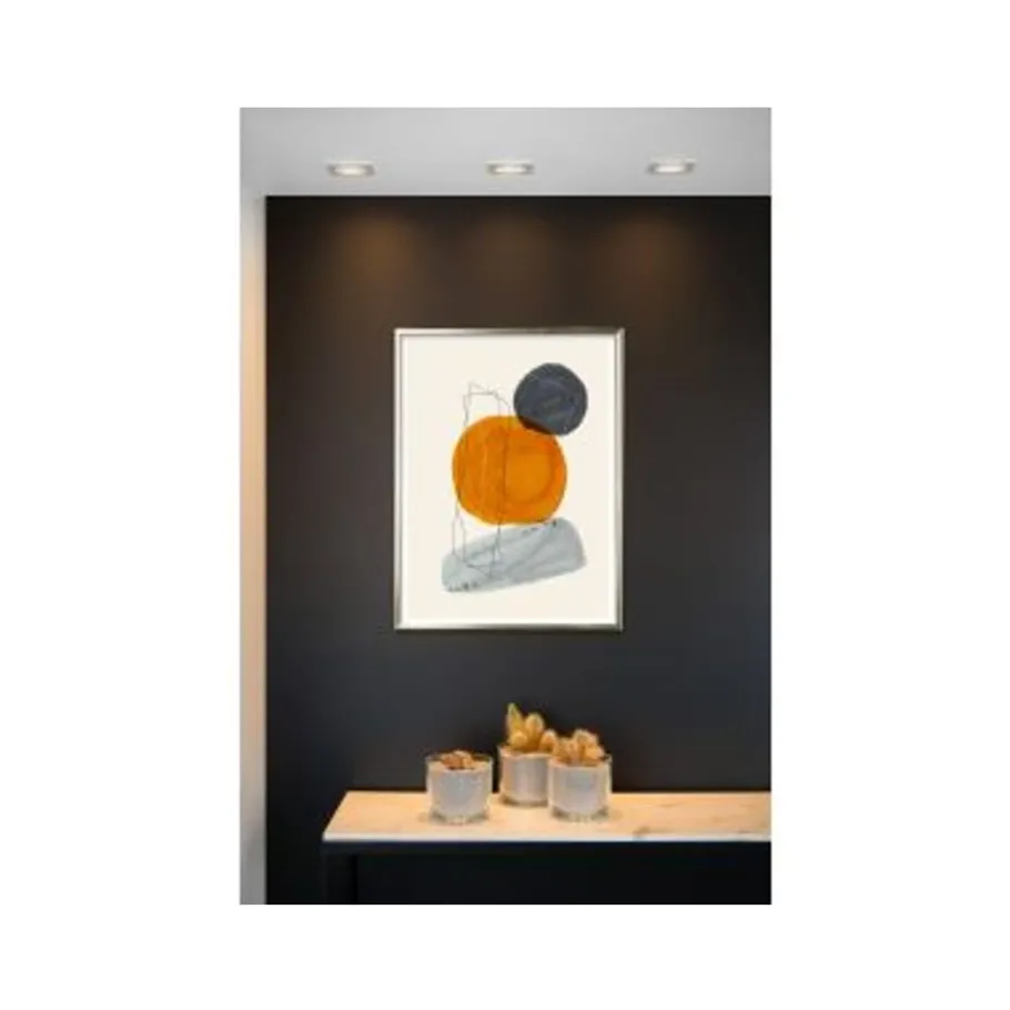 Strak inbouwspotje met dimbare GU10 LED spot, geleverd in een handige set van 3. De Focus is verkrijgbaar in de kleuren RVS, wit, brons en grijs, geschikt om in te bouwen in uw valse plafonds en perfect richtbaar om zowel de hele kamer als een muur uit te lichten.