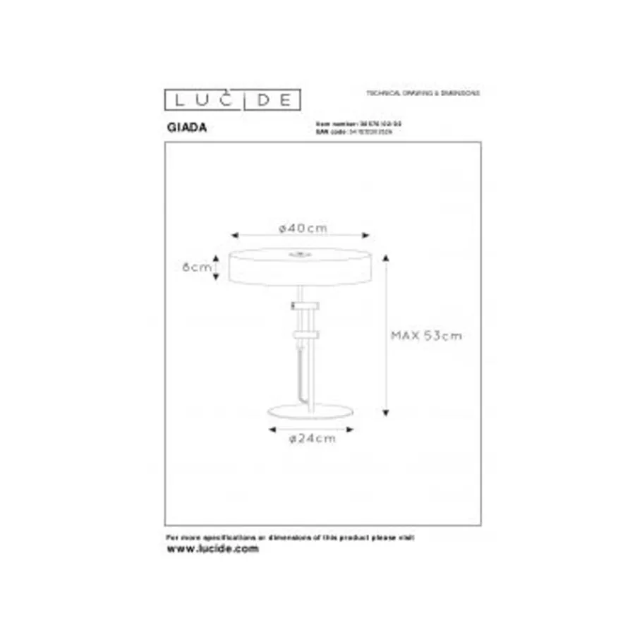 Lucide GIADA – Tafellamp – Ø 40 cm – 2xE27 – Mat Goud / Messing Discount