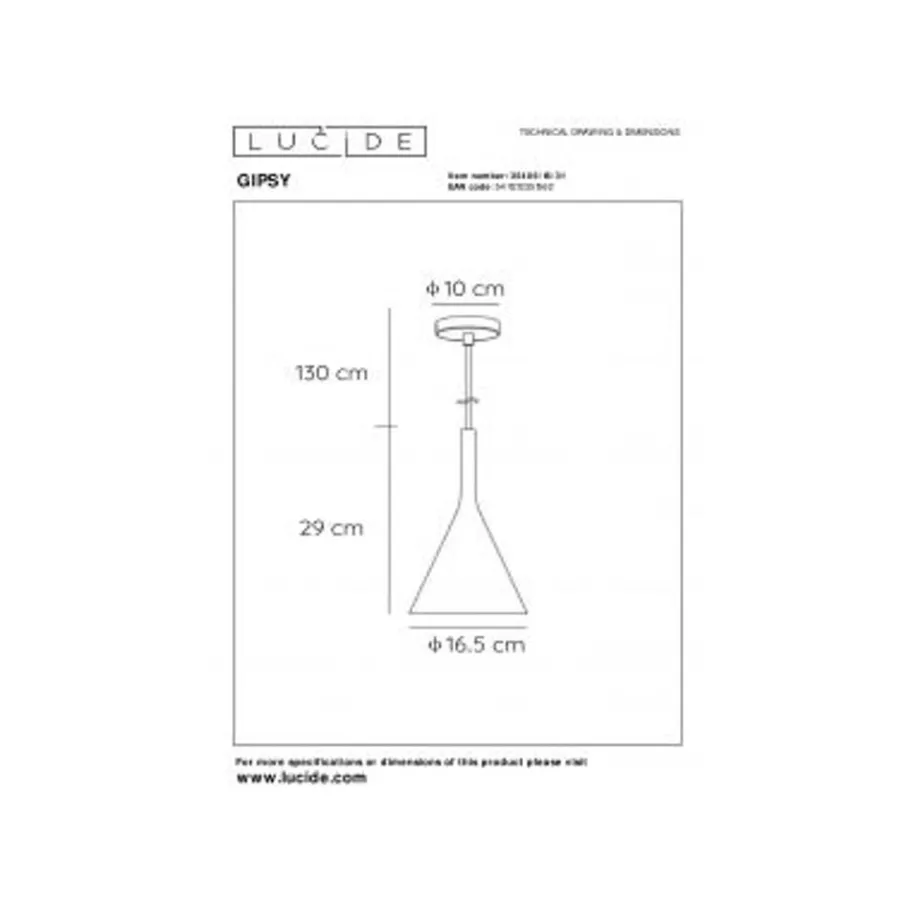 Lucide GIPSY – Hanglamp – Ø 16,5 cm – 1xE27 – Wit Clearance