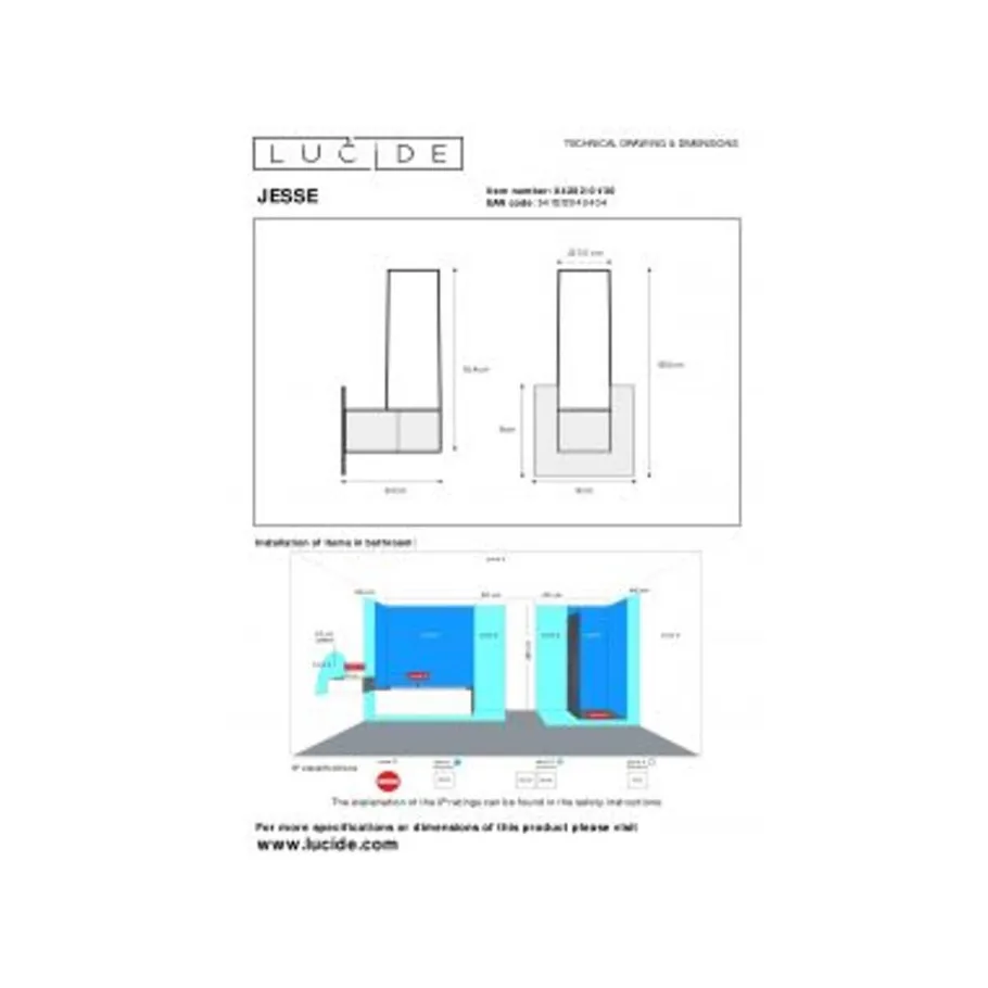 Lucide JESSE – Wandlamp Badkamer – 1xG9 – IP44 – Zwart Outlet