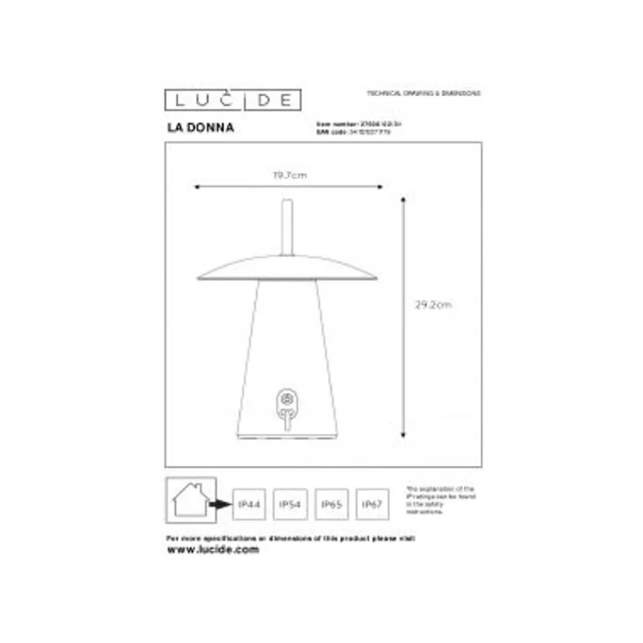 Lucide LA DONNA – Tafellamp Buiten – Ø 19,7 cm – LED Dimb. – 1x2W 2700K – IP54 – 3 StepDim – Wit Best