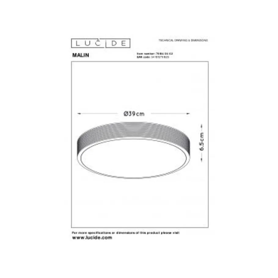 Lucide MALIN – Plafonnière – Ø 39 cm – LED Dimb. – 1x24W 2700K – 3 StepDim – Mat Goud / Messing New