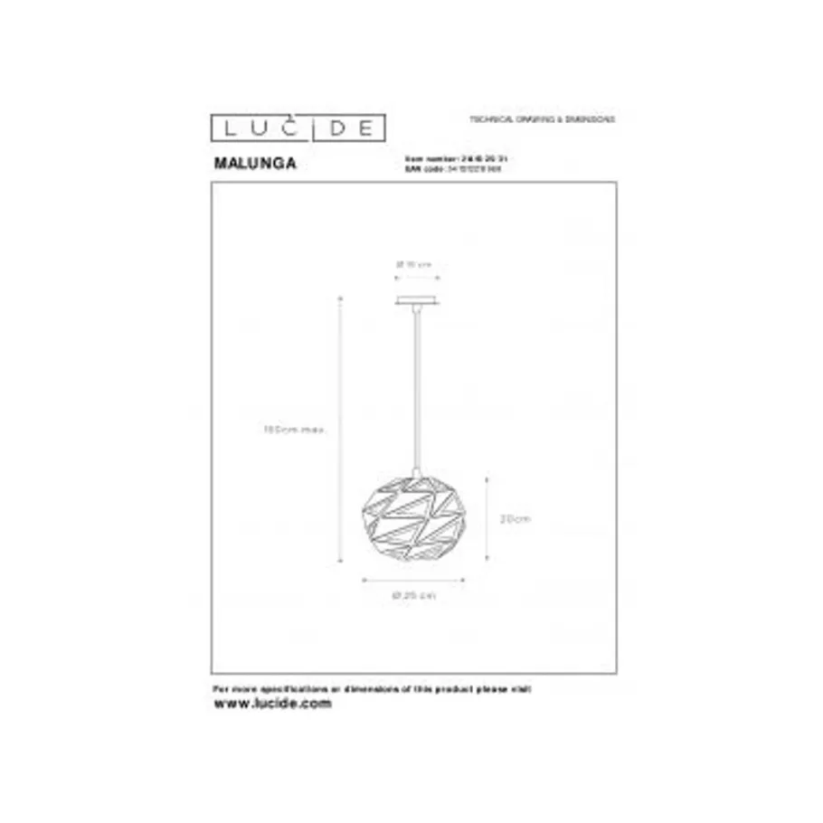 Lucide MALUNGA – Hanglamp – Ø 25 cm – 1xE27 – Wit Hot