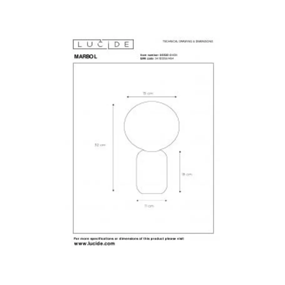 Be the first to review “Lucide MARBOL Tafellamp-Wit-Ø15-1xE27-25W-Metaal Online”