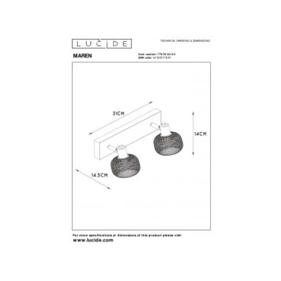 Lucide MAREN – Plafondspot – 2xE14 – Mat Goud / Messing New