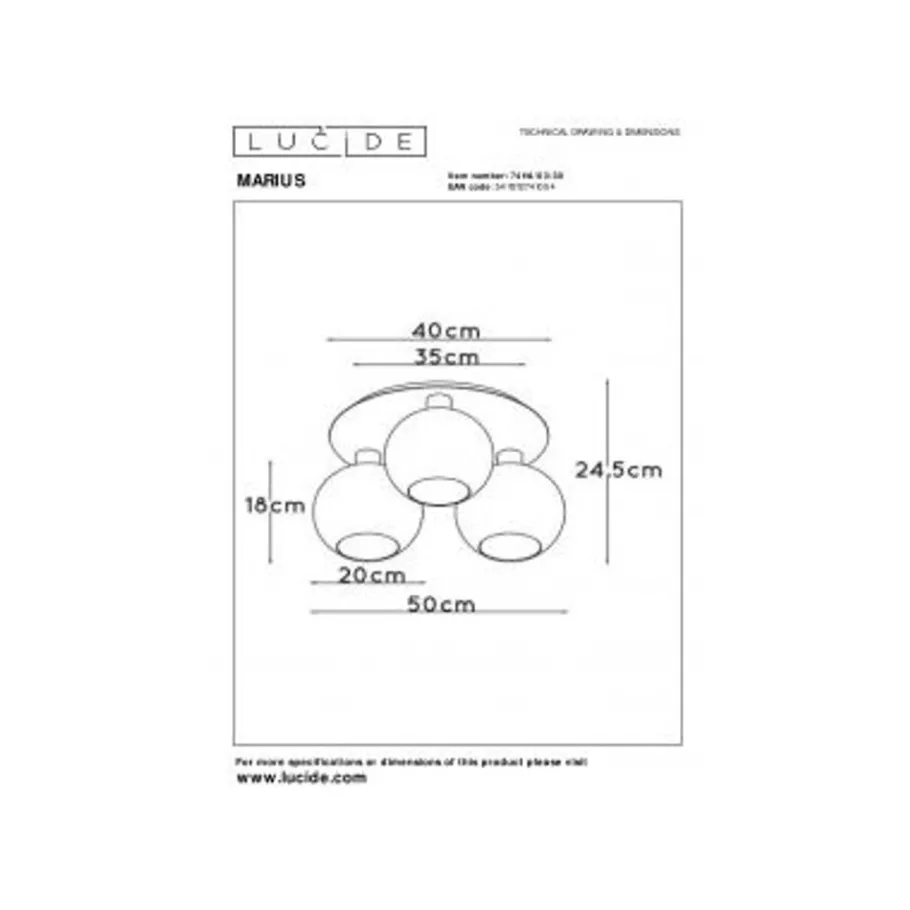 Lucide MARIUS – Plafonnière – 3xE27 – Zwart Hot
