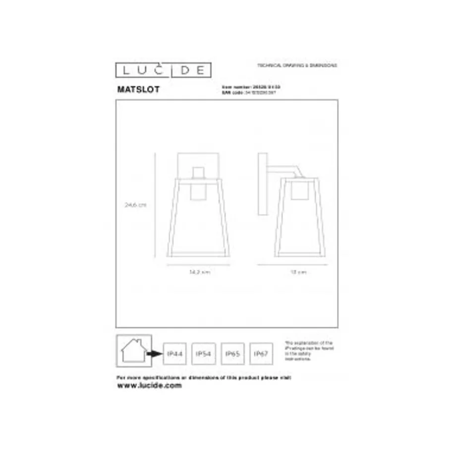 Lucide MATSLOT Wandlicht IP23 E27 H25cm Zwart Clearance
