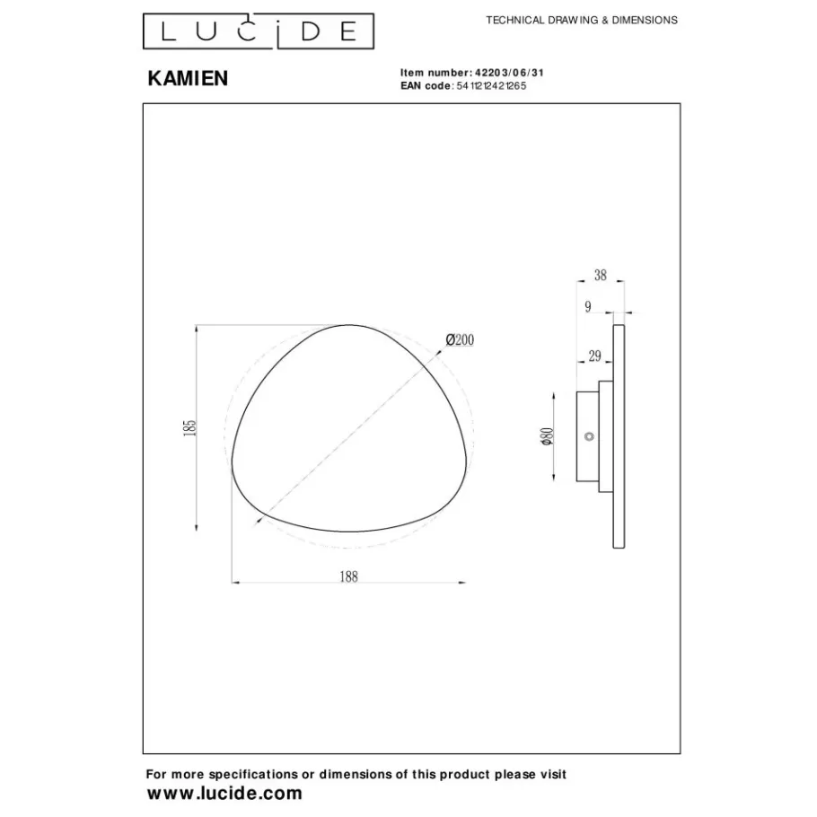 Lucide Premium KAMIEN – Wandlamp – LED – 1x6W 2700K – Wit Hot