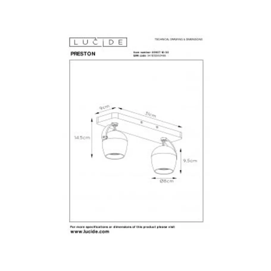 Lucide PRESTON – Plafondspot – LED Dim to warm – GU10 – 2x5W 2200K/3000K – Mat Goud / Messing Outlet