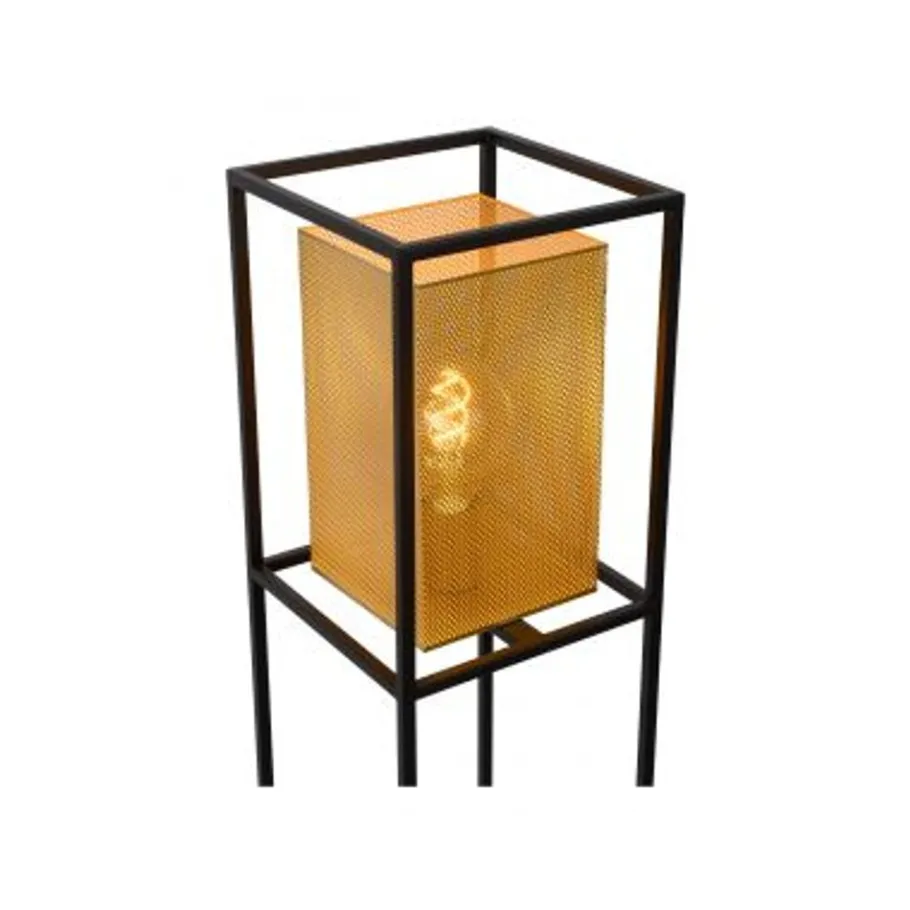 Deze elegante, statige vloerlamp draagt de naam Sansa. Met een hoogte van 122 centimeter en een breedte van 22 centimeter is ze een knappe verschijning in strakke, moderne interieurs. De eenvoudige, rechthoekige structuur in zwart metaal wordt bovenaan gesierd door een kleinere rechthoek met gaasstructuur. De mat gouden kleur rondom de lichtbron geeft een warme touch aan het geheel en aan je ruimte. Combineer met een gepaste ledlamp en zet deze staanlamp aan en uit met de schakelaar bevestigd op het snoer.