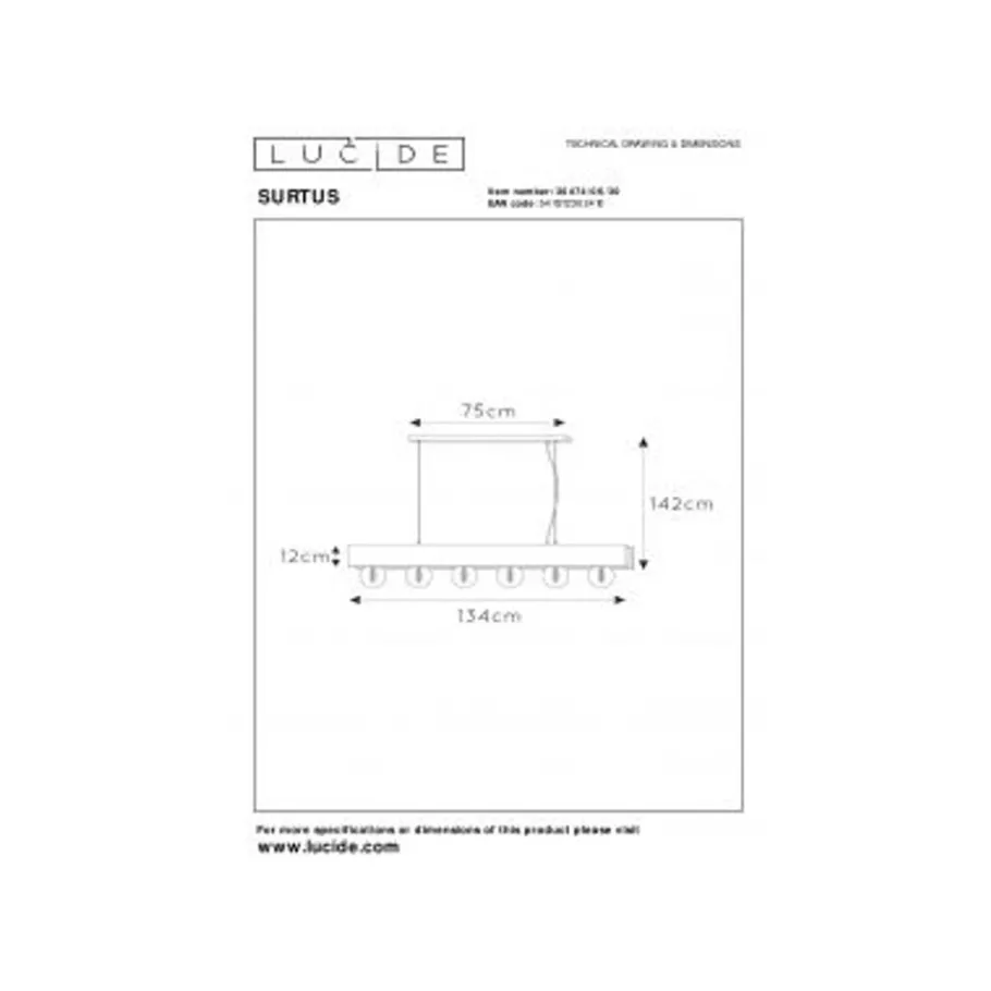Lucide SURTUS Hanglamp 6xE27/60W Zwart Online
