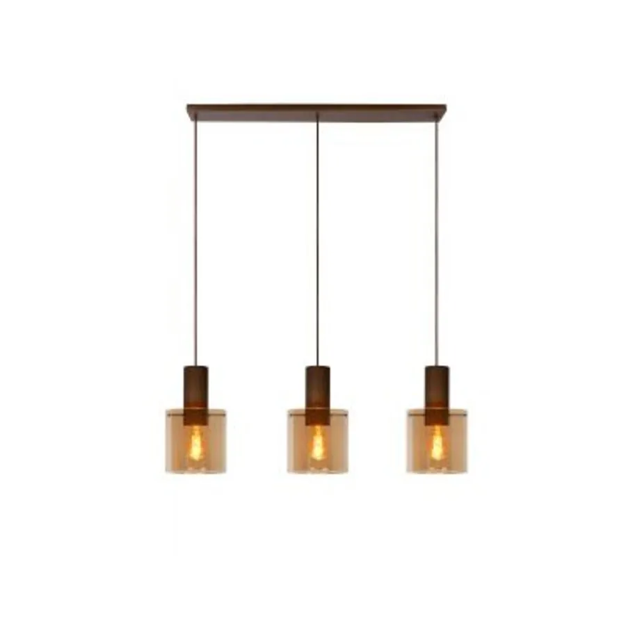 Lucide TOLEDO Hanglamp 3xE27/60W Koper / Amber glas Clearance