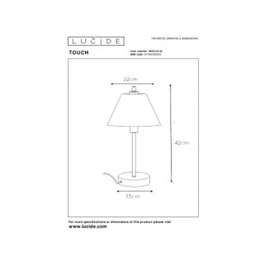 Lucide TOUCH – Tafellamp – Ø 22 cm – 1xE14 – 3 StepDim – Mat chroom