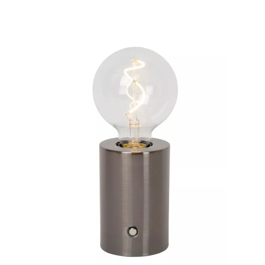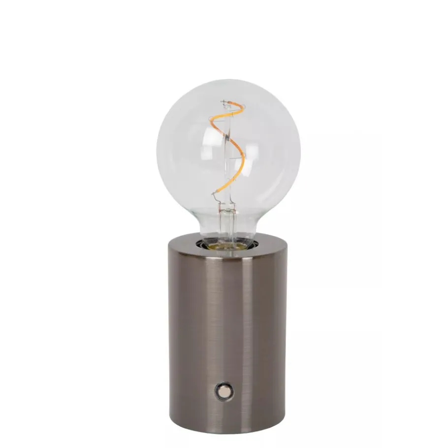 Lucide VIVO – Oplaadbare Tafellamp – Accu/Batterij – Ø 8 cm – LED Dimb. – E27 – 1x1W 2700K – Mat zwart chroom New