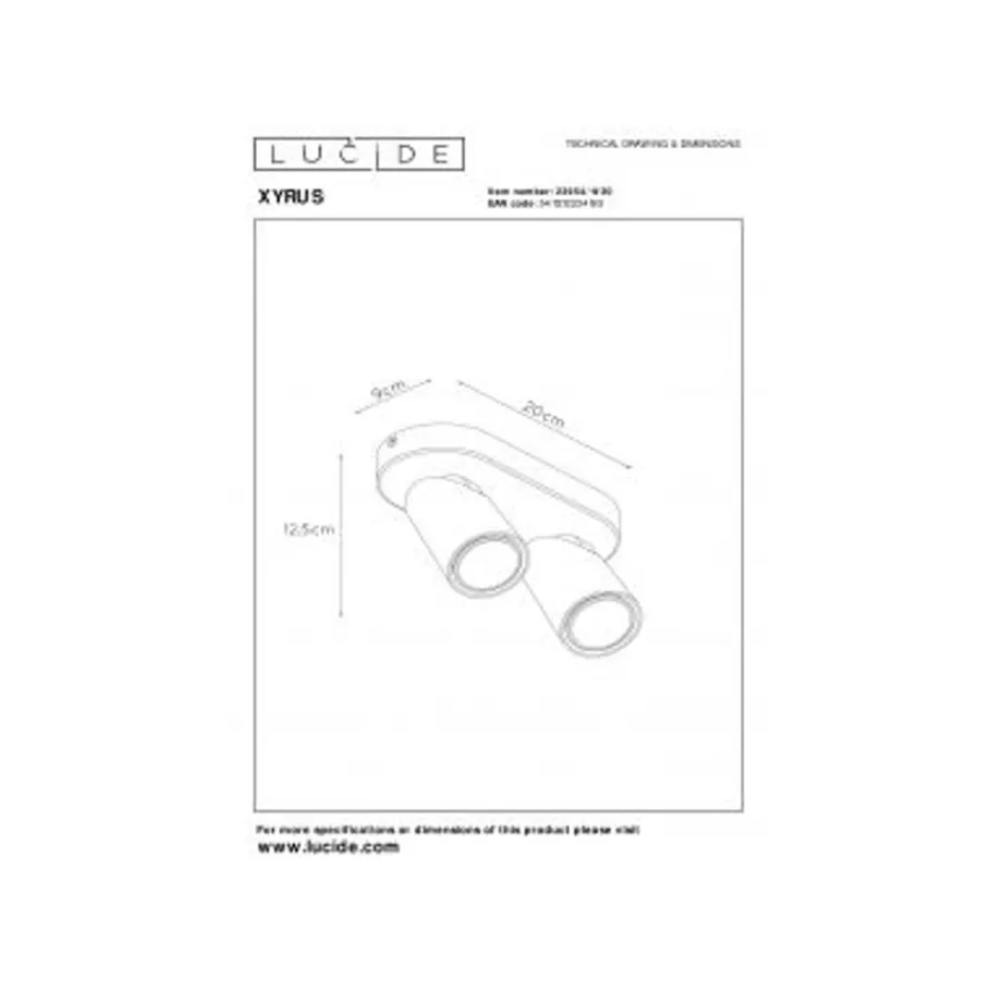 Lucide XYRUS Spot 2xGU10/5W incl.DTW L20 W9 H12.5cm Zwart Online