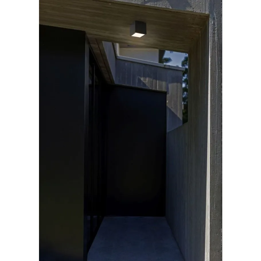 De kleine plafondlamp GEMINI in mat zwart heeft een minimalistisch design, de elegante bakstenen lamp verspreidt een perfecte lichtbundel.