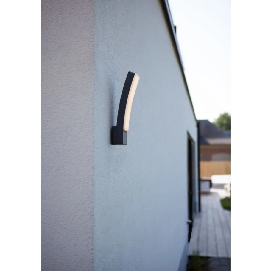 De KIRA LED-wandlamp voor buiten heeft een gebogen, frameloze diffusor en verspreidt een homogeen wit licht (4000K) waarmee u muren, paden en andere open ruimtes rondom uw huis kunt verlichten.